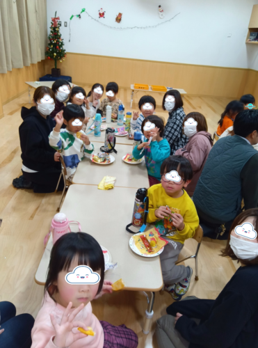 最後は、みんなでおやつパーティー! 楽しいクリスマス会でした。