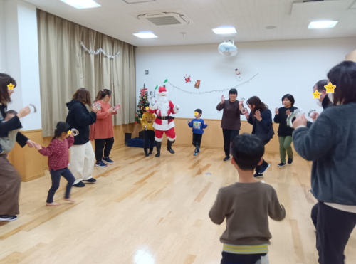 お父さん、お母さん、あしび園では、元気で、笑顔で、楽しく過ごせていますか?子どもたちと楽しく遊べていますか?不安なく過ごせていますか?あしび園で過ごす時間が、お父さん、お母さん、子どもたちの幸せに少しでもつながれば…とねがっています。 (サンタクロース)