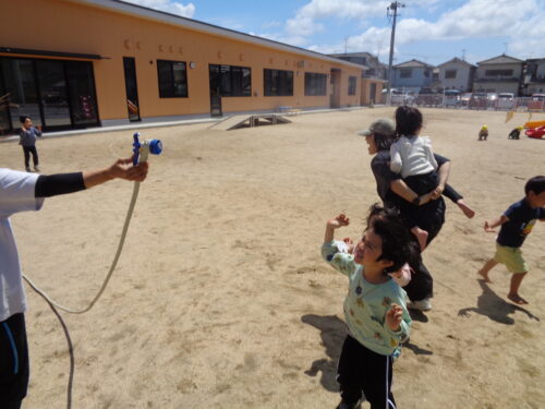 新年度が始まって2か月がたち、こうやってしゃぼん玉が始まるとくま組に戻ってきてくれる子どもが増えました。うれしいです。