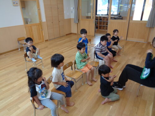 と『かたつむり』の歌を先生が楽しく歌いながら