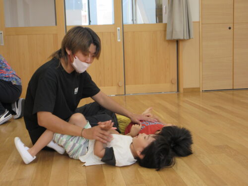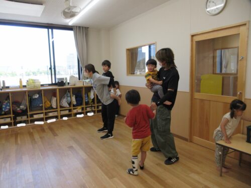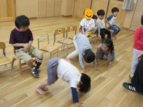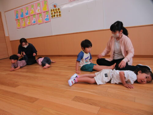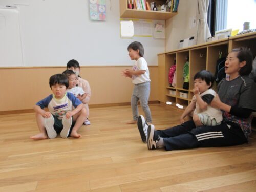 りすぐみでは、4月から、からだあそびの活動を繰り返し取り組んでいます。参観日では“ふれあいあそび“をしましたが、今回はクラスでの様子をお伝えします。