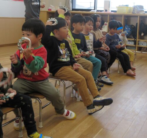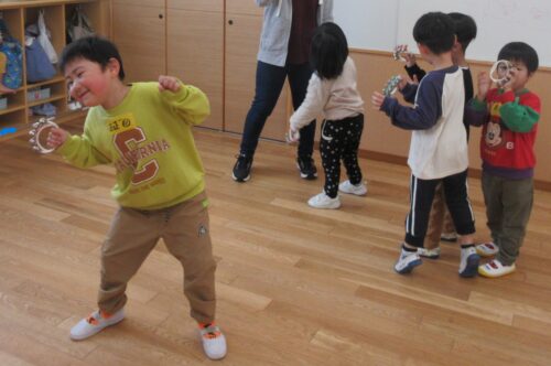 少し難しいことも、自分で『やってみたい‼』とクリスマスのイメージを膨らませ、期待して取り組むことができるように、まずはクリスマスソングを流します。
