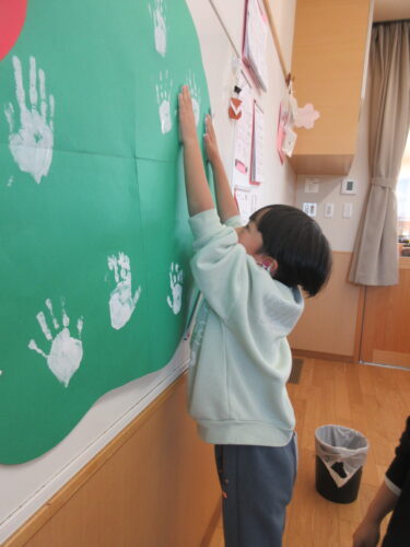 ということで、1月の壁面製作は“大きな獅子舞”をみんなで作りました。