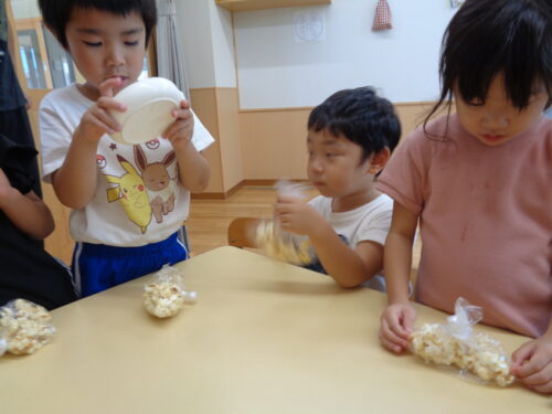 ポップコーン作りは3日連続で行いました。