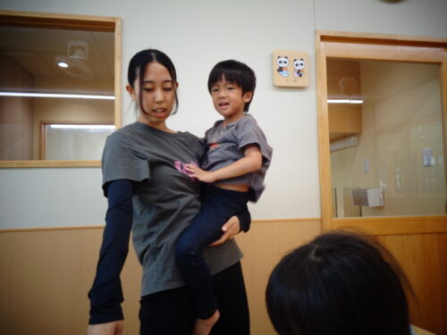 くま組では初めての活動で、少しドキドキする姿もありましたが、大好きな先生と一緒に取りくみました。