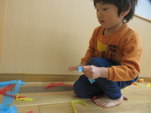 軽くて柔らかい花紙に触れ、感触を楽しんだり…