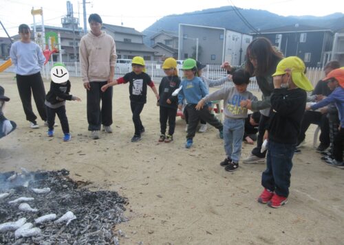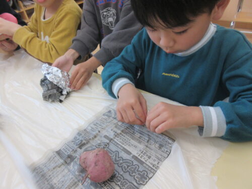 後日、年長の取り組みで「やきいも大会」を行いました。