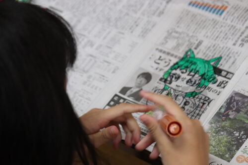 プラバン作りでは、色々なキャラクターの絵が描かれたプラバンが用意されており、好きなキャラクターを選んで色塗りをしていました。こちらも自分の好きな推しキャラがゆえ、とても集中していました。