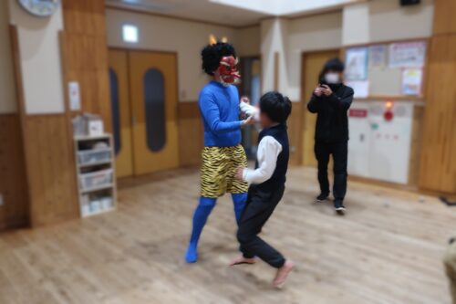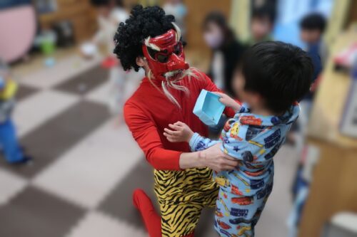 2月3日は節分。こぶしヶ丘学園に、赤鬼と青鬼がやってきました!