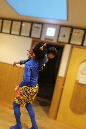 そうしているうちに、遠くから太鼓の音が近づいてきます。鬼たちはまず幼児棟へ向かった様子。