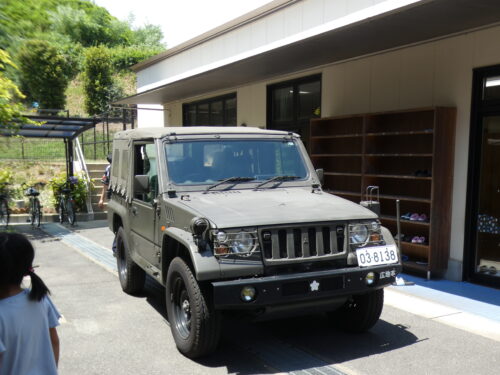 最後には陸上自衛隊の車に実際に乗らせてもらいました。「中入ると思っていたよりも広いんだね!」「私も運転席乗ってみたい!」と滅多にない機会に子どもたちは大はしゃぎです。