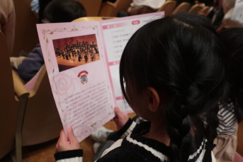 子どもたちはプログラムを見ながら「この曲なんだろう?早く聞いてみたい」「この歌知ってる!」など各々感想を言いながら楽しみに待っています。いざ曲が始まると演奏の迫力に驚きました。海に関係する曲を始め、ジブリの曲、昭和・令和のメドレー……自衛隊の方の素敵な歌声と一緒に演奏されたものもあります。