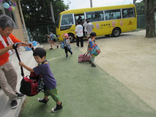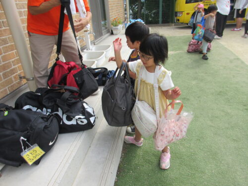 今朝、子どもたちは大きな荷物を持って登園してきました。