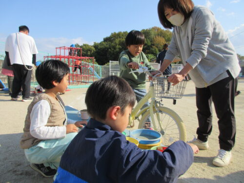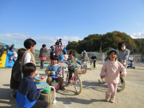 自転車に乗ったり、ジャングルジムやすべり台、砂場で遊んだりとそれぞれに好きなあそびで過ごしながらも、