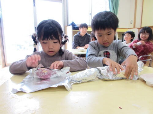 年長児さんは「ヤキイモ!」と昨日から引き続きワクワクが止まりません♪