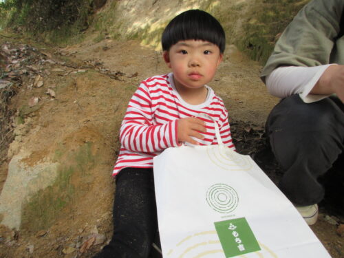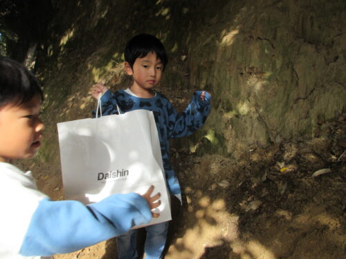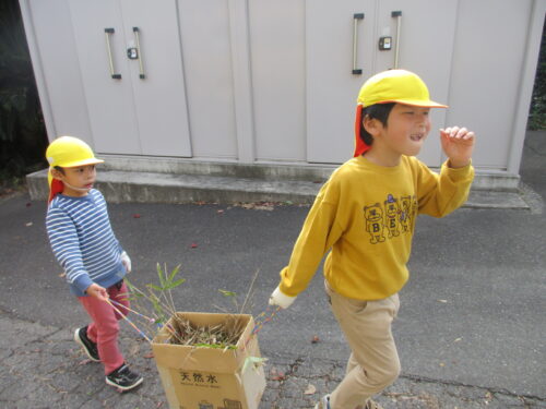 持って帰る時には「ヤキイモ楽シミダネ」「フタバ保育所ノ子ト一緒二スルノ」「美味シクデキルカナ?」と、それぞれ明日のやきいも会に期待を膨らませていました☆