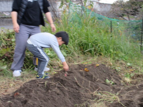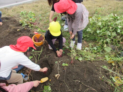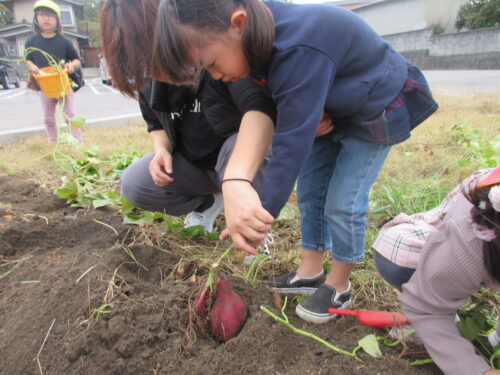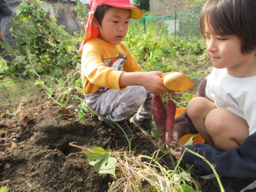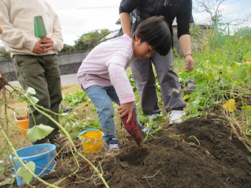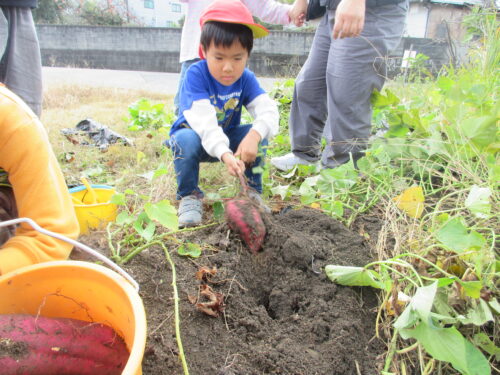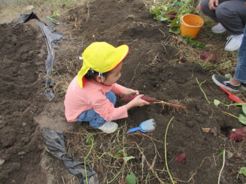 土から顔を出したお芋を見つけて、スコップや手を使って掘り起こす子もいましたよ