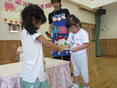 『おやつたーべよ』では、「いちご、ごー!ごー!」と言葉の語尾に合わせて身体を動かすため、子どもたちは大盛り上がり♪