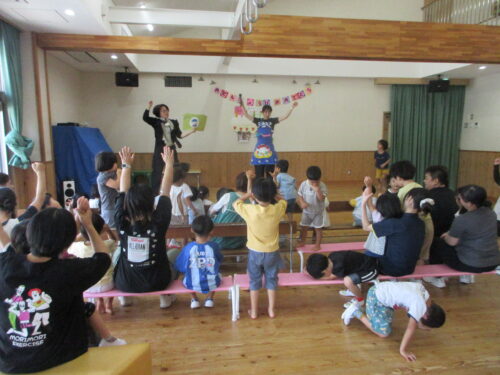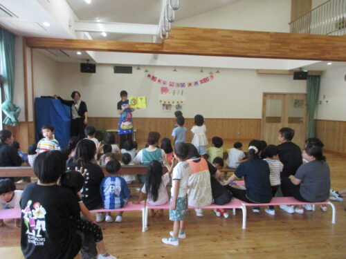 リズムに合わせて身体を揺らしながら、知っている子は口ずさんでみたり、初めて見る子は興味津々でじっと集中して見ていたりと、それぞれに楽しんでいました✨