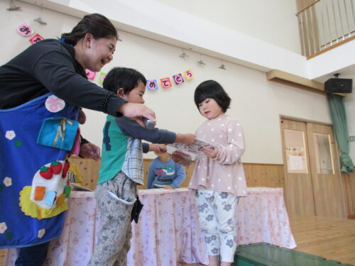 誕生日カードを渡す時には大きな声で「オメデトウ!」と伝え、お誕生日のお友だちは嬉しそうにもらっていました😊