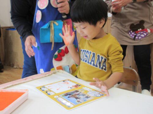 去年よりも、大きくなった手形をドン!とつけたり、誕生日ケーキのロウソクをフーっと吹き消したりします。