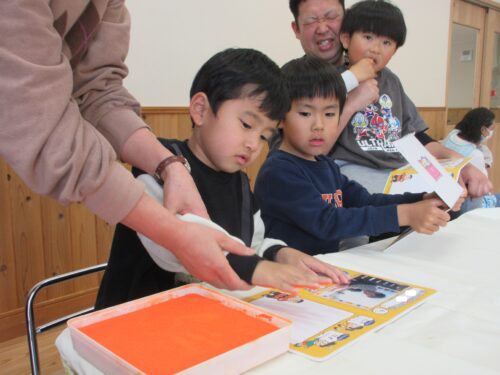 ケーキのろうそくの火を消したり、手形を取ったりと、何度もくり返し行ってきた誕生日会なので見通しはバッチリです。昨年よりも、大きくなった手形です。